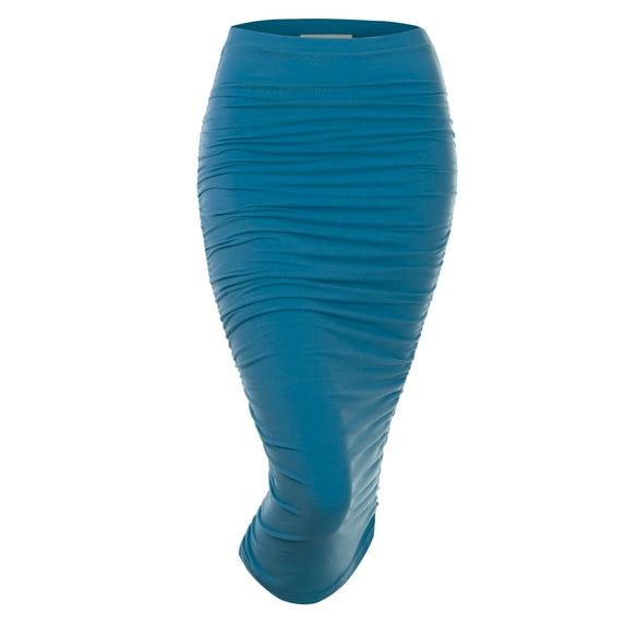 Doublju Women's Slim-Fit Ruched Long Pencil Skirt (Plus Size Available)
