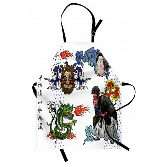 Hero image 0 of Dragon Apron Japanese Manga Figures Dragon with Fire a Man with Kimono Geisha Tribal Characters, Unisex Kitchen Bib Apron with Adjustable Neck for Cooking Baking Gardening, Green Blue, by Ambesonne, 0 of 3