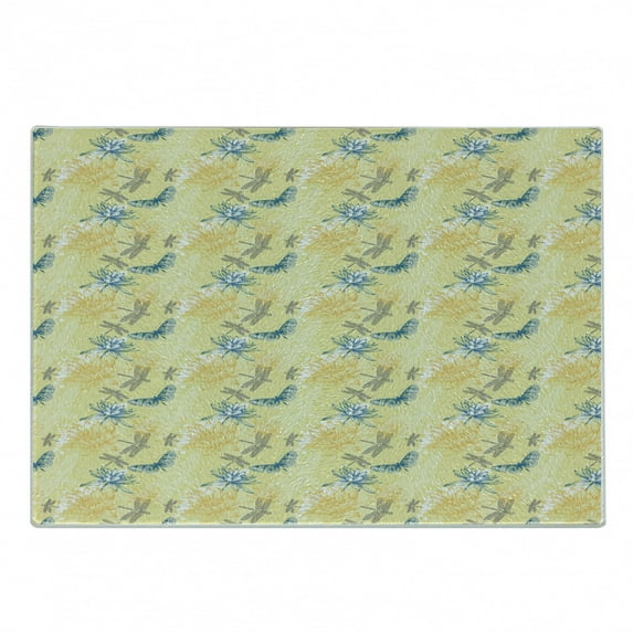 Hero image 0 of Dragonfly Cutting Board, Water Lilies and Flying Insects in Vintage Style Exotic Fauna, Decorative Tempered Glass Cutting and Serving Board, Small Size, Pale Yellow Blue, by Ambesonne, 0 of 1