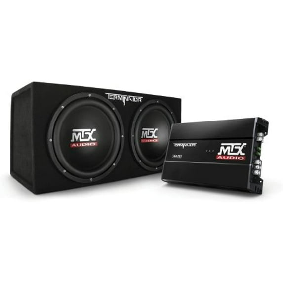 BRAND NEW MTX AUDIO TERMINATOR BASS PACKAGE WITH DUAL 12" 1200 WATT SUBWOOFERS + HIGH PERFORMANCE CLASS D MONO AMPLIFIER + 5/8" MDF SUBWOOFER ENCLOSURE