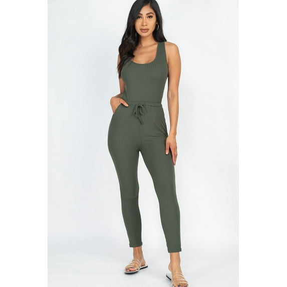 Drawstring Ribbed Sleeveless Jumpsuit