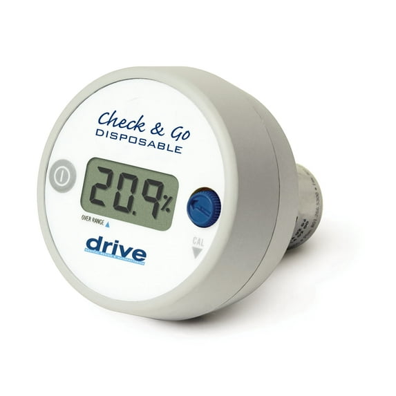 The Check and Go is designed to monitor oxygen concentration in the patient-breathing environment. It is one of a full line of oxygen analyzers. The Check and Go utilizes the Drive oxygen sensor and is engineered for fast response, maximum reliability and stable performance. The Check and Go is designed primarily for spot checking of oxygen levels delivered by medical oxygen delivery equipment and respiratory care systems. Its lightweight, compact size, extended battery life, and "auto off" feature makes this oxygen analyzer ideal for portable oxygen analysis by qualified heath care professionals.