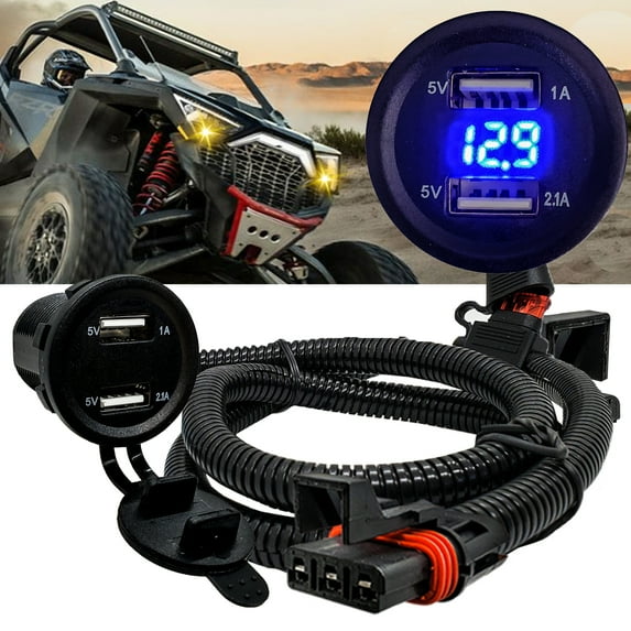 Hero image 0 of Dual USB Port Blue LED Volt Meter Fast Charger 5V Power Outlet with Pulse Power Bus Bar Plug Harness Compatible with Polaris RZR Turbo Pro Ranger Crew XP 2018-2023, 0 of 7