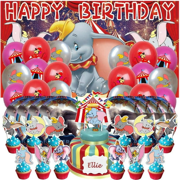 Dumbo Balloons Party Supplies Decorations Plates Banner Cake Topper Tableware Birthday Decor