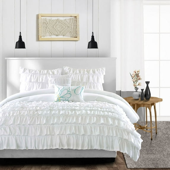 Hero image 0 of Duvet Cover 3 Piece Egyptian Cotton Cozy & Breathable 600 Thread Count Multi Ruffle Duvet Covers with Zipper Closure & Corner Ties Soft Comforter Cover (Super King Plus Plus, White ), 0 of 4