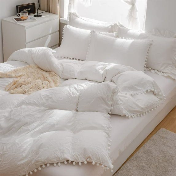 Duvet Cover White Full Size Washed Microfiber Bedding Duvet Cover Set Pom Poms Fringe Solid Color Soft and BreathableDuvet Cover White Full Size Washed Microfiber Bedding Duvet Cover Set Pom Poms Fringe Solid Color Soft and BreathableDuvet Cover White Twin Size Washed Microfiber Bedding Duvet Cover Set Pom Poms Fringe Solid Color Soft and Breathable