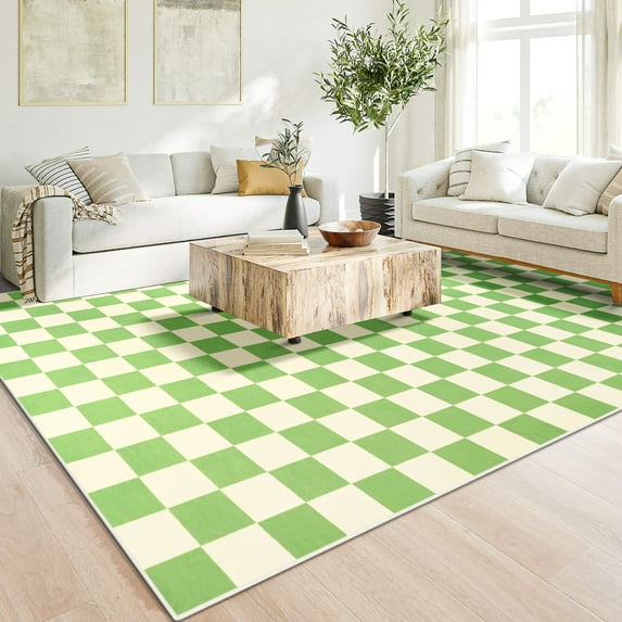 Dwelke Plaid Area Rug Checkered Rug Washable Rugs For Living Room Carpet Green,5x8ft
