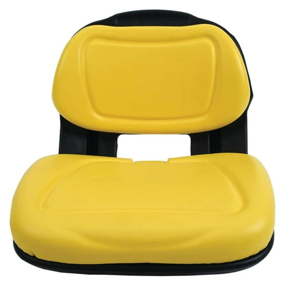 - Specs: Description: Seat, Universal Compact Tractor Seat, Yellow Medium Back 15 3/4" (405mm) equipment seat, Plastic Pan 18 1/2" (475mm) wide, with Drain Holes (Rain, Snow etc), Durable molded plastic frame, multiple threaded mounting holes.