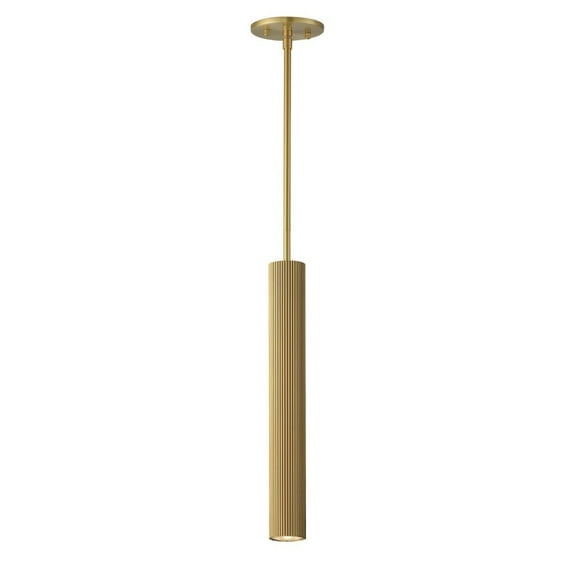 Collection: Reeds, Material: Steel, Finish Color: Gold, Width: 2.25", Height: 17.75", Length: 2.25", Lamping Type: LED, Number Of Bulbs: 1, Wattage: 7 Watts, Cri: 90, Color Temperature: 3000 Kelvin, Lumens: 450, Dimmable: Yes, Moisture Rating: Dry Rated, Desc: Reeded glass tubes are paired with ribbed aluminum LED housings in your choice of Gold or Matte Black finishes. The interior frosted glass diffusers soften the high-powered LED boards concealed within. The low-voltage light sources are driven by a commercially rated range voltage LED drivers with universal dimming, allowing them to be used in both residential and decorative commercial or hospitality applications. ADA compliant sconces are a welcome companion to the series as well as the fully metal stem hung pendant option designed without glass and uses a JA8 Listed LED GU10 lamp instead of dedicated LED., - - Reeds - 7W 1 LED Pendant-17.75 Inches Tall and 2.25 Inches Wide-Gold Finish -