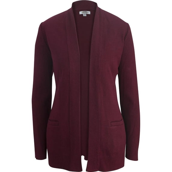Edwards Ladies' open cardigan made with Tuff-Pil? Plus acrylic yarns for lo-pil performance. Featuring a stylish vertical ribbed placket; ribbed long sleeves and bottom hem. Companion style is #565
