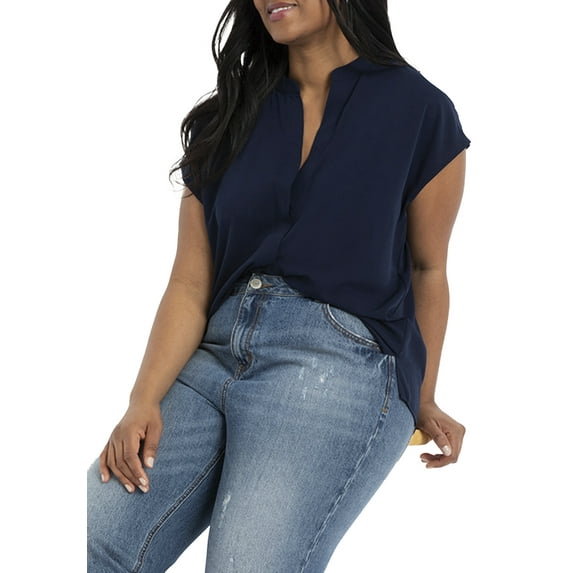 ELOQUII Women's Plus Size Notch Collar Blouse