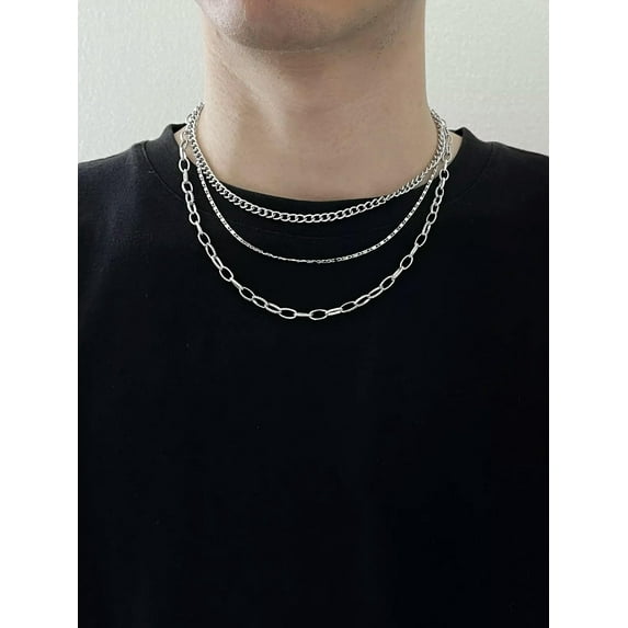 3Pcs Men Chain Necklace Jewelry Gift For Men Jewelry For Men Gift For Men-Default
