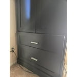 After following the instructions and putting the cabinet completely together, it seems like the shelves and drawers are meant for a different cabinet. they're too small. The drawers constantly fall off the rails, and the shelves, if not centered, collapse as well. The cabinet is slowly falling apart with almost no use because I use it for storage instead of daily items. Trust me, buy elsewhere.