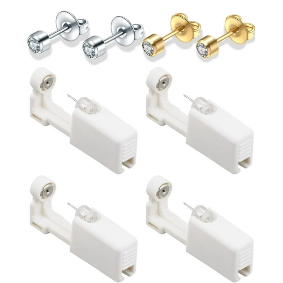 Hero image 0 of Ear Piercing Kit, 4 Pack Self Ear Piercing Gun, Disposable Self Body Piercing Kit with Earring Studs Ear Piercing Needle Kit for Salon Home (White-Gold), 0 of 5