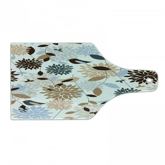 Hero image 0 of Earth Tones Cutting Board, Flourishing Hydrangea Flowers in Abstract Style Skinny Stems with Leaves, Tempered Glass Cutting and Serving Board, Wine Bottle Shape, Brown Blue White, by Ambesonne, 0 of 1