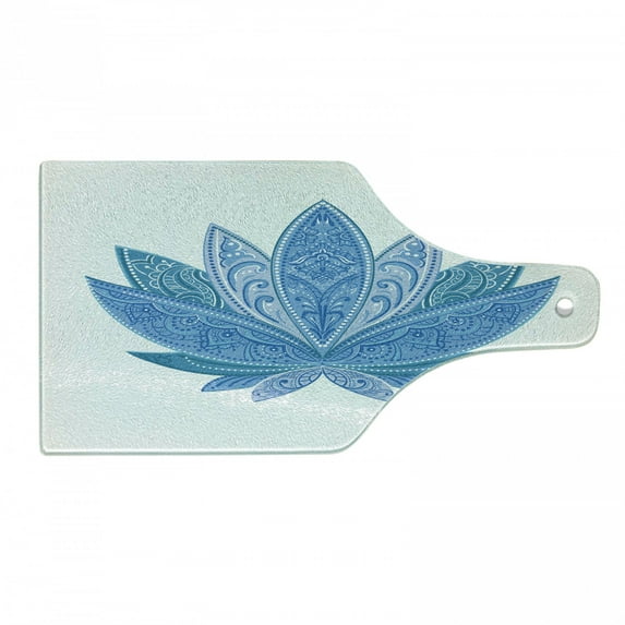 Hero image 0 of East Cutting Board, Design with Paisleys and Swirls on Lotus Petals Eastern Motifs, Decorative Tempered Glass Cutting and Serving Board, Wine Bottle Shape, Purple Grey Petrol Blue, by Ambesonne, 0 of 1