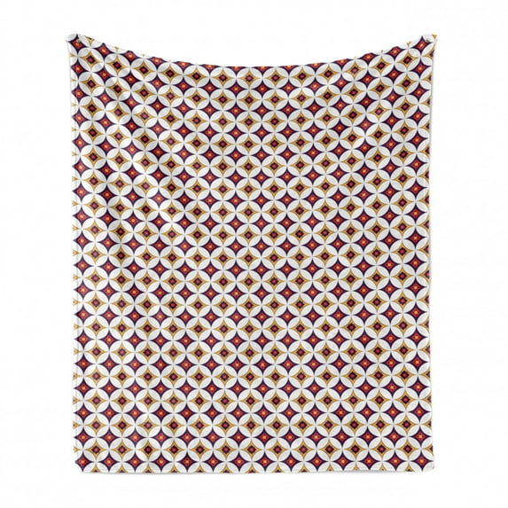Hero image 0 of East Soft Flannel Fleece Throw Blanket, Balinese Retro Mosaic Pattern with Circles and Squares, Cozy Plush for Indoor and Outdoor Use, 50" x 70", Dark Purple Vermilion, by Ambesonne, 0 of 6