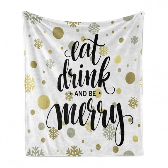 Hero image 0 of Eat Drink and Be Merry Soft Flannel Fleece Throw Blanket, Abstract Snowflakes Circles Celebration for New Year Typography, Cozy Plush for Indoor and Outdoor Use, 70" x 90", Multicolor, by Ambesonne, 0 of 6
