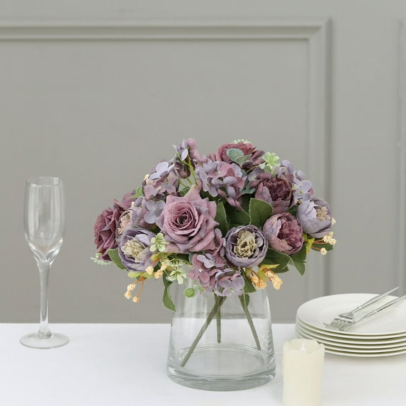 Hero image 0 of Efavormart 2 Pack | 12" Purple Artificial Assorted Peony Flower Bouquets, Silk Floral Arrangements, 0 of 10