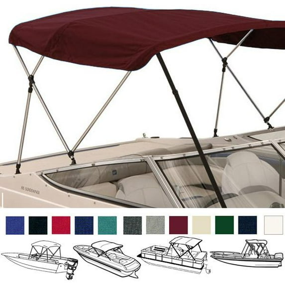 EliteShield 3 Bow Bimini Top Boat Cover Burgundy 3 Bow 72" L 46" H 67"-72" W with Boot and Rear Poles