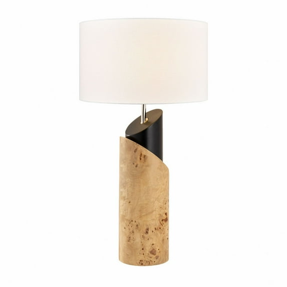 Collection: Kincaid, Material: Wood, Finish Color: Natural Burl, Width: 17", Height: 29.5", Depth: 17", Lamping Type: Incandescent, Number Of Bulbs: 1, Wattage: 150 Watts, Moisture Rating: Dry Rated, Desc: The Kincaid Table Lamp features an angled column of natural burled wood. The top of the lamp body showcases an inner triangle juxtaposed with matte black. The lamp is topped with a white fabric drum shade. 17in W x 17in D x 29.5in H / Natural burl finish / Item made from wood / 1 year limited warranty / Simple assembly / Intended for indoor use only / Perfect for a living room, bedroom, family room, den, library, or study. , - - Kincaid - 1 Light Table Lamp In Traditional Style-29.5 Inches Tall and 17 Inches Wide -