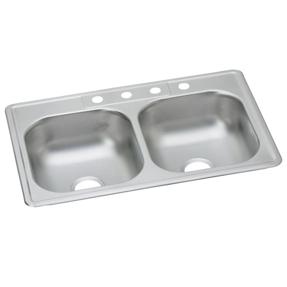 2 optionsAvailable in additional 2 options$17771current price $177.71More options from $157.04Elkay Dayton Stainless Steel 33" x 22" x 6-9/16", Equal Double Bowl Drop-in Sink