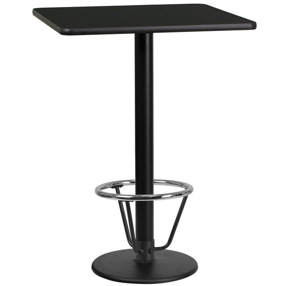 - Emma + Oliver 24" Square Black Laminate Bar Table Top with 18" Round Base and Foot Ring