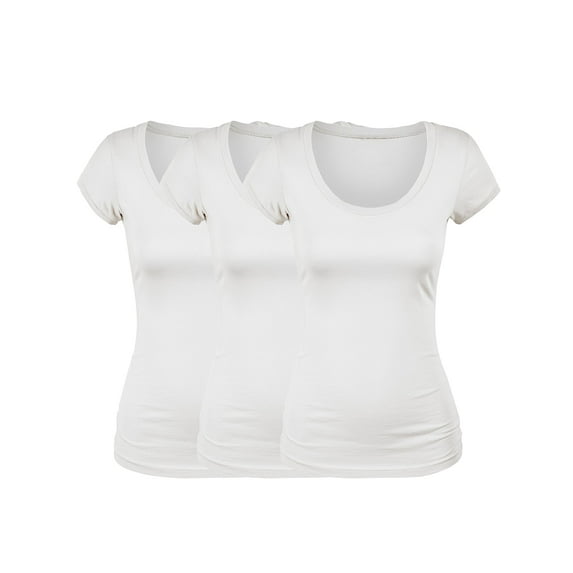 Emmalise Women's Short Sleeve Tshirt Scoop Neck Tee Value Set (3Pk, Wht, Wht, Wht, Medium)