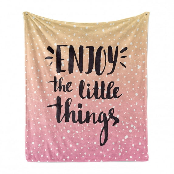 Hero image 0 of Enjoy the Little Things Soft Flannel Fleece Blanket, Uplifting Lettering on Ombre Effect White Dots Background, Cozy Plush for Indoor and Outdoor Use, 60" x 80", Peach Pink and Black, by Ambesonne, 0 of 6