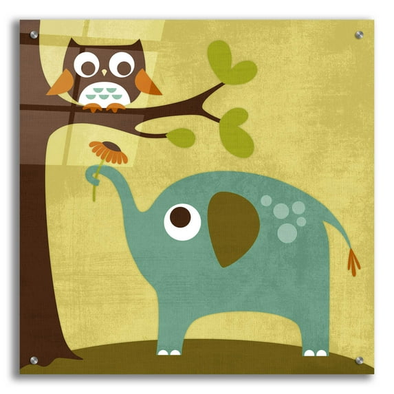 Hero image 0 of Epic Art 'Owl and Elephant' by Nancy Lee, Acrylic Glass Wall Art, 24"x24", 0 of 8