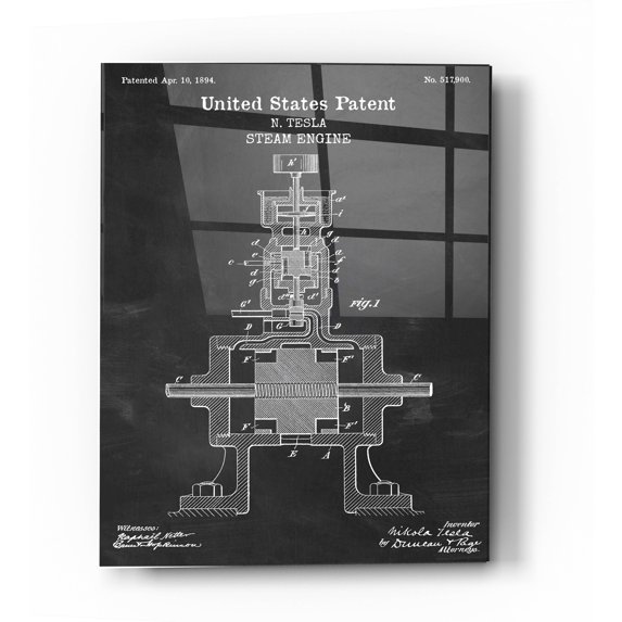 Epic Art 'Tesla Steam Engine Blueprint Patent Chalkboard' Acrylic Glass Wall Art, 24"x36"Epic Art Tesla Steam Engine Blueprint Patent Chalkboard Acrylic Glass Wall Art 24 x36Epic Art Tesla Steam Engine Blueprint Patent Chalkboard Acrylic Glass Wall Art 12 x16Epic Art Tesla Steam Engine Blueprint Patent Chalkboard Acrylic Glass Wall Art 16 x24