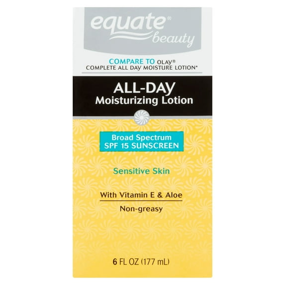 Options from$486– $1458Equate All Day Moisturizing Lotion with SPF 15 Sunscreen for Face Care of Normal Skin, 6 fl oz, Compare to Olay® Complete UV365 Daily Moisturizer with Sunscreen Broad Spectrum SPF 15 Normal