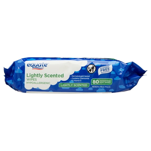 Equate Lightly Scented Wipes are pre-moistened wipes that are dermatologist tested to be safe for delicate and sensitive skin. Our soothing and gentle hypoallergenic formula is enriched with chamomile and vitamin E and contains no paraben or alcohol. Packaged in a convenient, resealable dispenser, they're sure to stay moist and soft. Feel fresh and clean anytime with a pack of Equate Lightly Scented Wipes. Making the right health decisions can be challenging. With a complete range of products and simple solutions, Equate allows you to take care of your family with confidence.