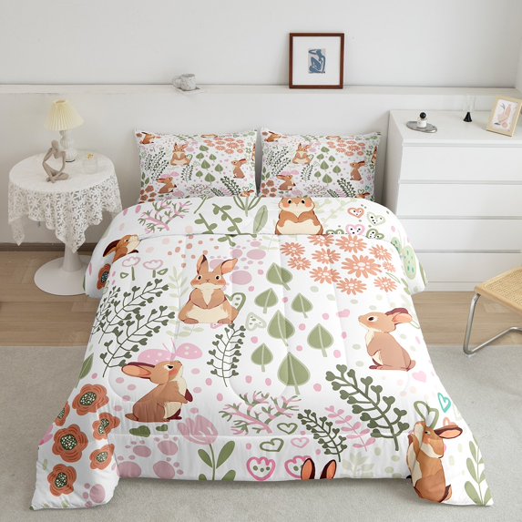 Hero image 0 of Erosebridal Cartoon Rabbit Bedding Full Comforter Set, Cute Animal Down Comforter, Flower Plant Decor, Reversible 3pcs, 0 of 7