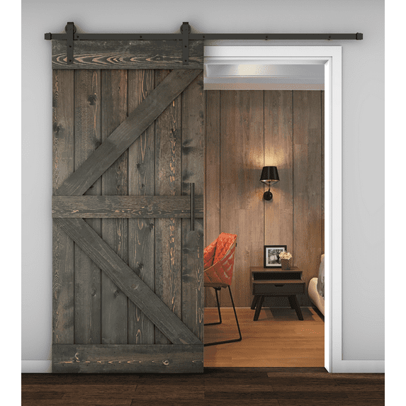 Hero image 0 of Essencaliy 38in x84in Solid Wood Barn Door, Made-in-USA Farmhouse Interior Sliding Barn Door With 6.58ft Barndoor Hardware Kit (DIY), 0 of 5