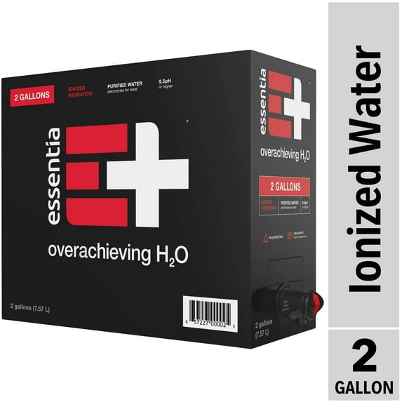 - ESSENTIA WATER 2 GALLON BOX: 2 Gallons of Essentia ionized alkaline water that’s 99.9% pure with a pH of 9.5 or higher and a clean, smooth taste — so you can stop for nothing.