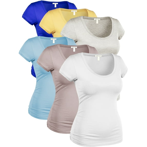 Hero image 0 of Essential Basic Women's Plus Classic Short Sleeve Scoop Neck 6 Pack Tshirts, Ryl LtYlw Oat AiryBlu CocTaupe Wht, XL, 0 of 5
