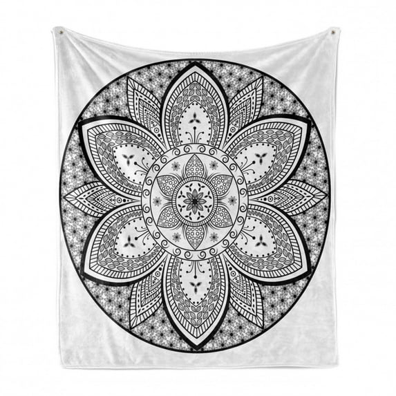 Hero image 0 of Ethnic Soft Flannel Fleece Throw Blanket, Mandala Design Leaves Flowers Ivy Swirls Dots Artwork Image Print, Cozy Plush for Indoor and Outdoor Use, 60" x 80", Black and White, by Ambesonne, 0 of 6