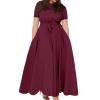 Evdexr Long Maxi Dresses for Women Plus Size Solid Color Dress Short Sleeve Crew Neck Dresses Wine 2XL