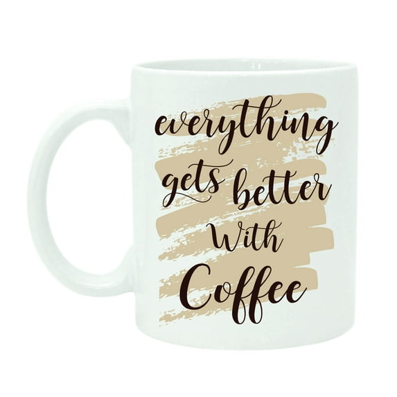 Hero image 0 of Everything Gets Better With Coffee, Quote Mug, Printed White Ceramic Coffee Mug With Free Gift Box, 0 of 1