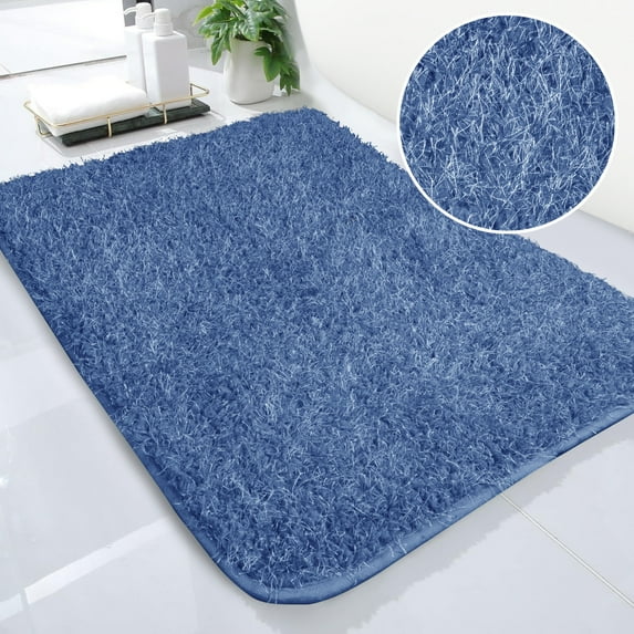 Evlmd New Blue Bathroom Rugs Mat, Large Bath Rug for Bathroom Floor Non-Slip, Super Elastic Silk Thread Easier to Dry Bath Shower Mat Runner, Machine Washable Bath Mat, 20" x 32"