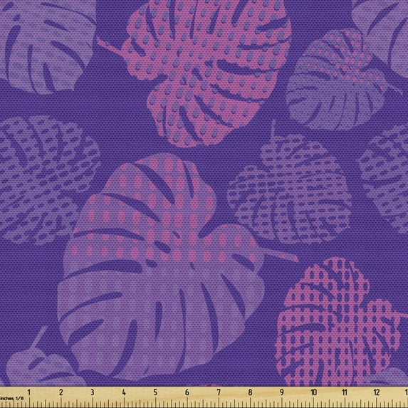 Hero image 0 of Exotic Fabric by the Yard, Tropical Monstera Leaves Contemporary Design Colors Aloha Vibes Summer Art, Decorative Upholstery Fabric for Chairs & Home Accents, Pink Purple Violet by Ambesonne, 0 of 5