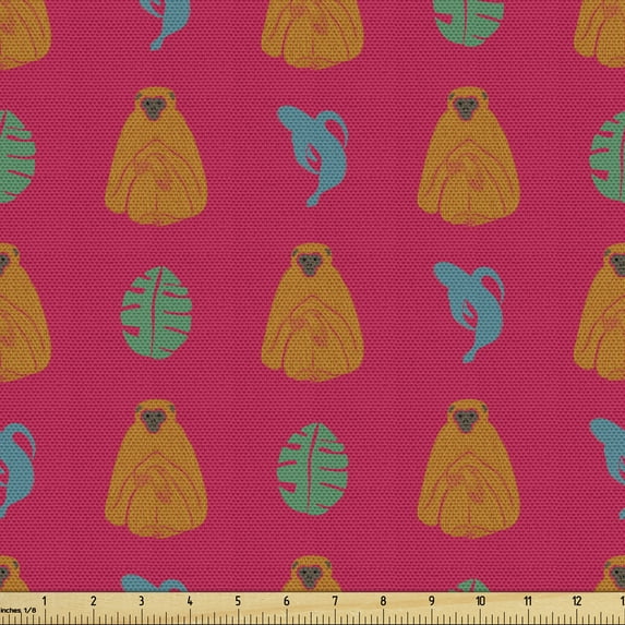 Hero image 0 of Exotic Sofa Upholstery Fabric by the Yard, Colorful Retro Style Concept of Monkey Animal Silhouettes and Leaves, Decorative Fabric for DIY and Home Accents, Orange Blue by Ambesonne, 0 of 5