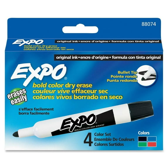 Expo Original Non-Toxic Dry Erase Marker, Bullet Tip, Assorted Color, Pack of 4
