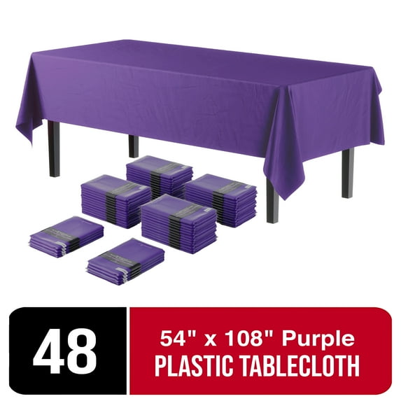Hero image 0 of Exquisite 54" X 108" Purple Disposable Tablecloths Plastic Tablecovers - 48 Pack, 0 of 9