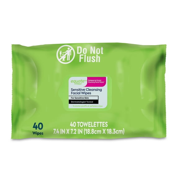 Equate Sensitive Cleansing Facial Wipes, 40 Count