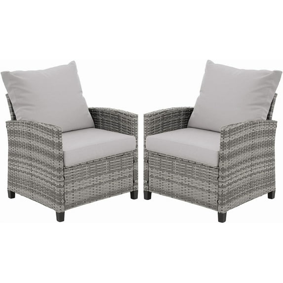 FHFO 2-Piece Outdoor Patio Wicker Chair Set - All-Weather UV-Resistant Rattan Single Armrest Sofas with Thick Cushions & Removable Washable Covers,Porch, Backyard, Garden, Grey-GreyFHFO 3 Pieces Wicker Bistro Set Outdoor Rattan Patio Conversation Set Cushions Garden Balcony Backyard Porch Lawn Grey Rattan Grey Cushion