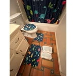 Frequently bought together, FRAMICS 16 Pc Kids Cartoon Dinosaur Shower Curtain and Rug Sets, Blue Cute Bathroom Sets, Waterproof Fabric Shower Curtain with 12 Hooks and Toilet Rugs