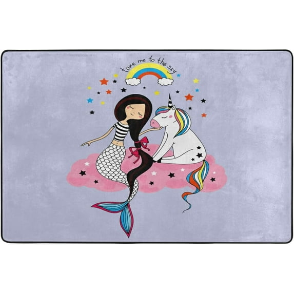 Hero image 0 of FREEAM Little Unicorn and Mermaid Non Slip Area Rug for Living Dinning Room Bedroom Kitchen, 5' x 7'(58 x 80 Inch), Cute Nursery Rug Floor Carpet Yoga Mat, 0 of 6
