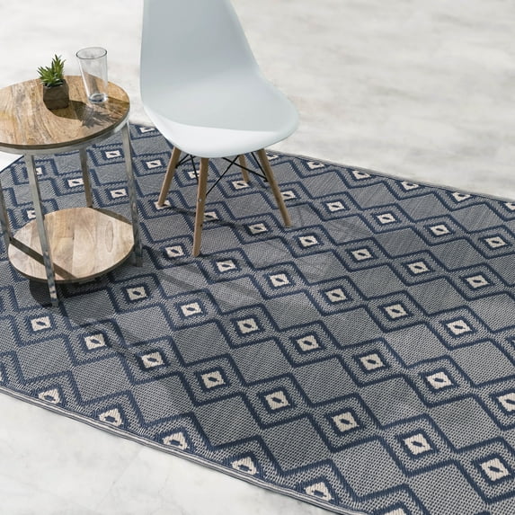 Hero image 0 of Fab Habitat Outdoor Rug - Waterproof, Fade Resistant, Crease-Free - Premium Recycled Plastic - Boho Geometric Diamond - Patio, Deck, Porch, Balcony, Laundry Room - Rabat - Blue & Cream - 4 x 6 ft, 0 of 12